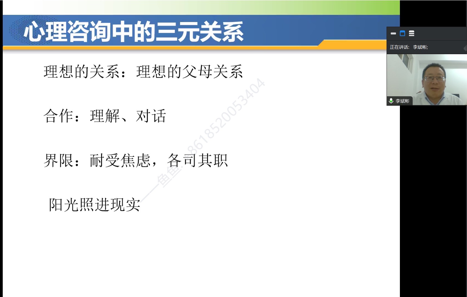 针对广大家长和学生普遍担忧的药物副作用问题,李医生指出,药物作为符号性的客体,其引起的生理性反应可能与来访者早年的情感体验和创伤性记忆紧密相关。因此,要将来访者的反应置于心理咨询的三元关系框架下理解。他强调,理想的心理咨询三元关系可以看作一种理想的父母关系,即基于理解、对话、尊重和爱的关系,这一观点强调了家长在孩子积极就医过程中的角色和责任,家长的支持、理解和关爱起着不可或缺的作用。